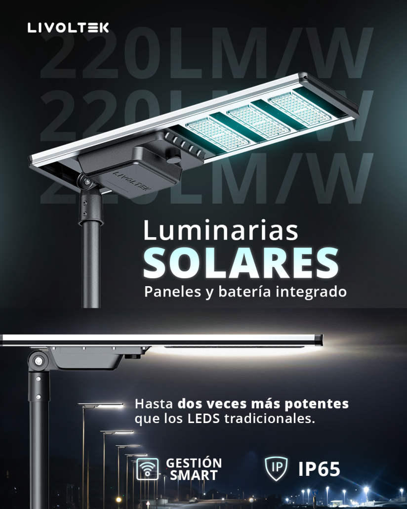 Las Luminarias Solares inteligentes de Livoltek son sistemas de iluminación que integran en un solo diseño compacto:
